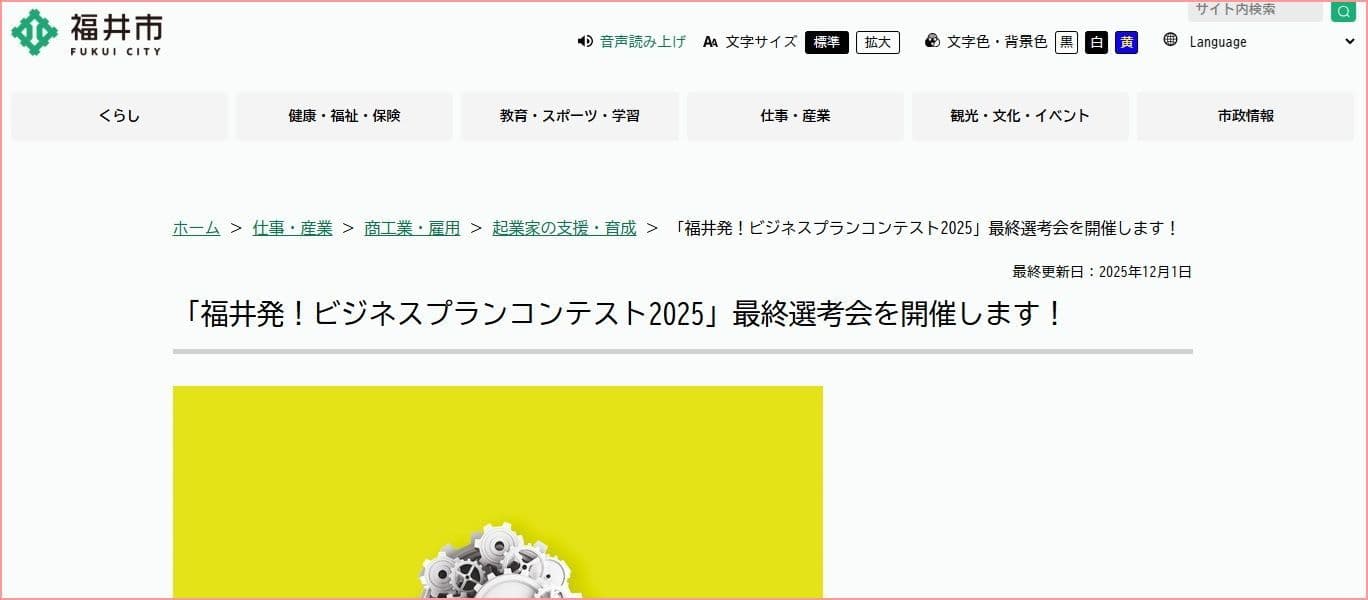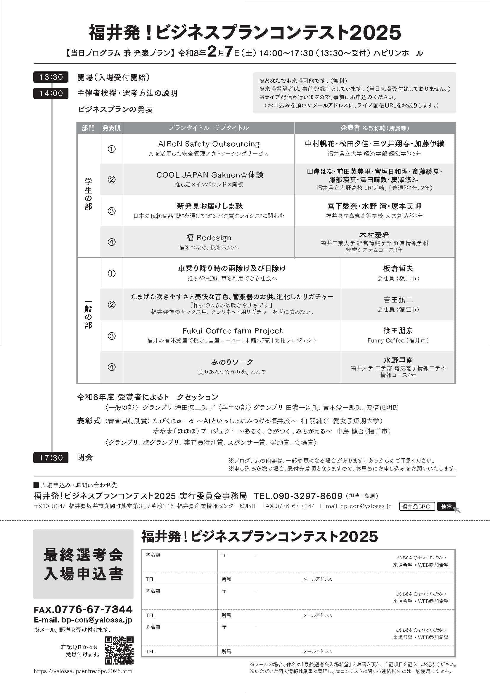 主催:福井市、福井発!ビジネスプランコンテスト2025実行委員会